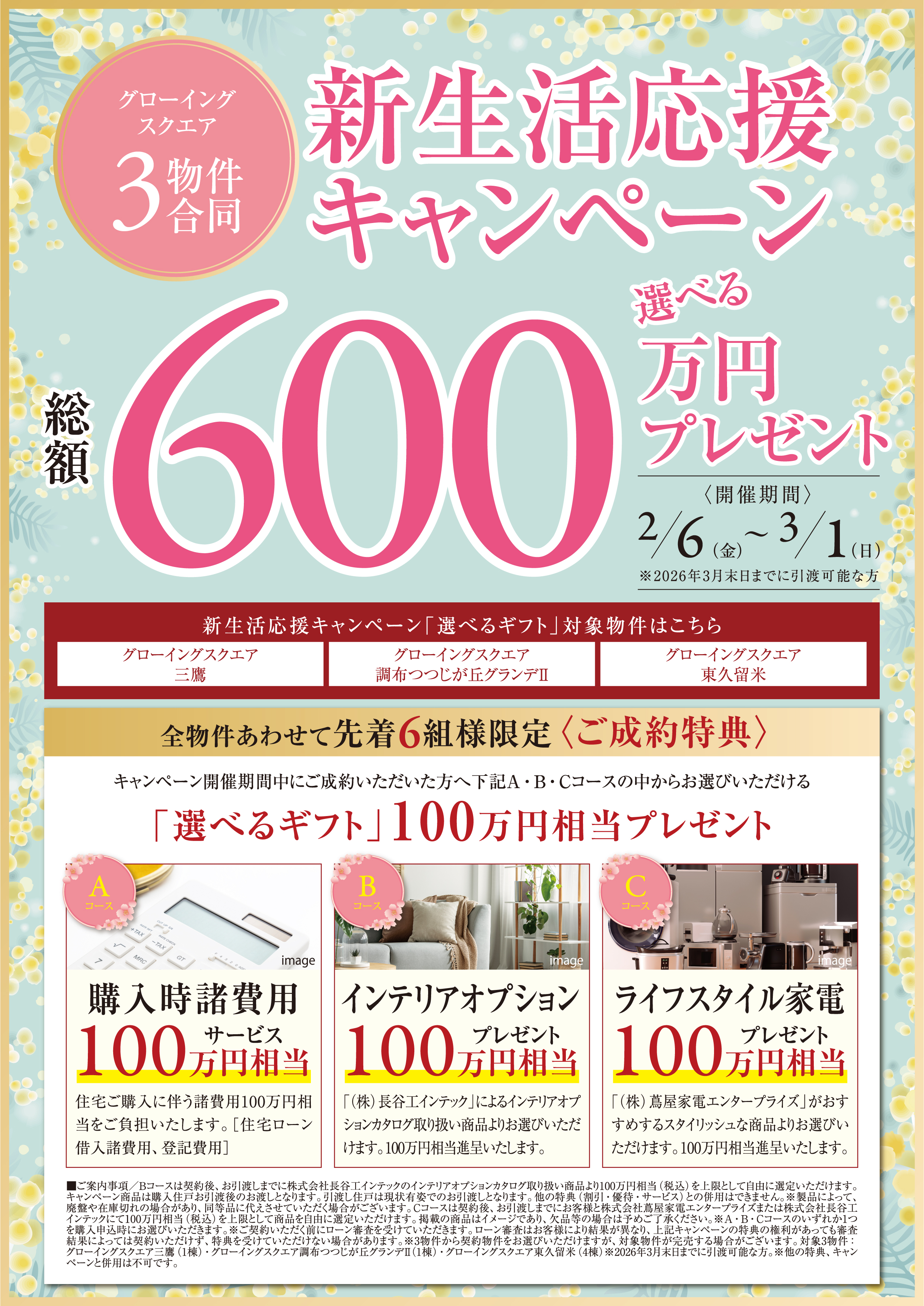 つつじヶ丘に新時代の意匠と新次元の品質を語るにふさわしい全5邸をお届けします。