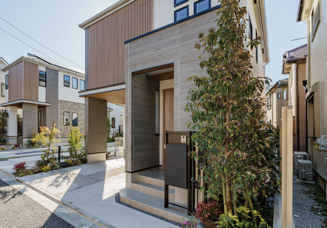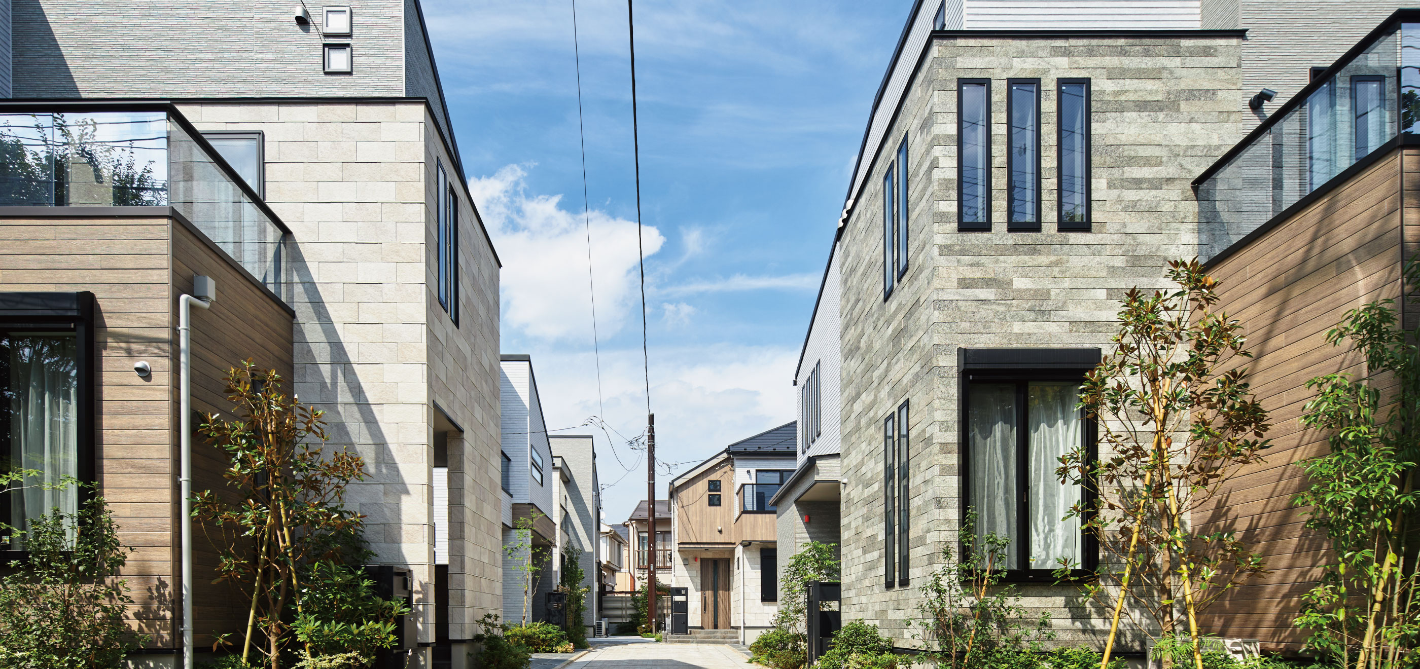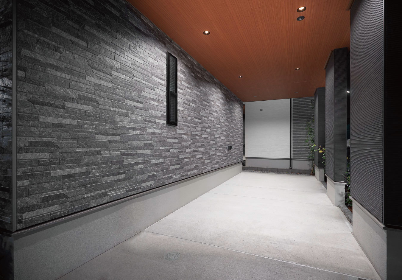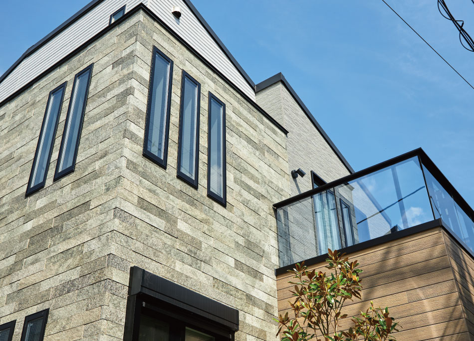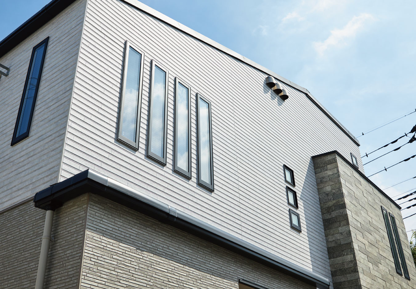 現代的な雰囲気を演出するために。建物の外壁には、サイディングを利用。街並みに調和する美しさと邸宅としての品格を高めるために、サイディング材の選定・デザインに特にこだわっています。