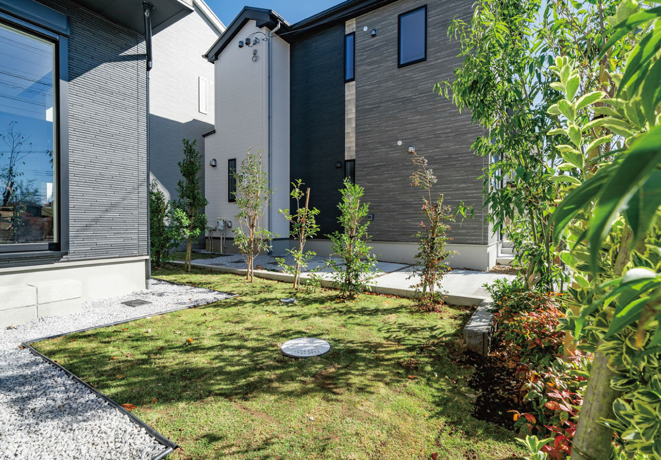 日向ぼっこやお子さまの水遊びなど、アウトドアの寛ぎを愉しめるゆとりある庭。