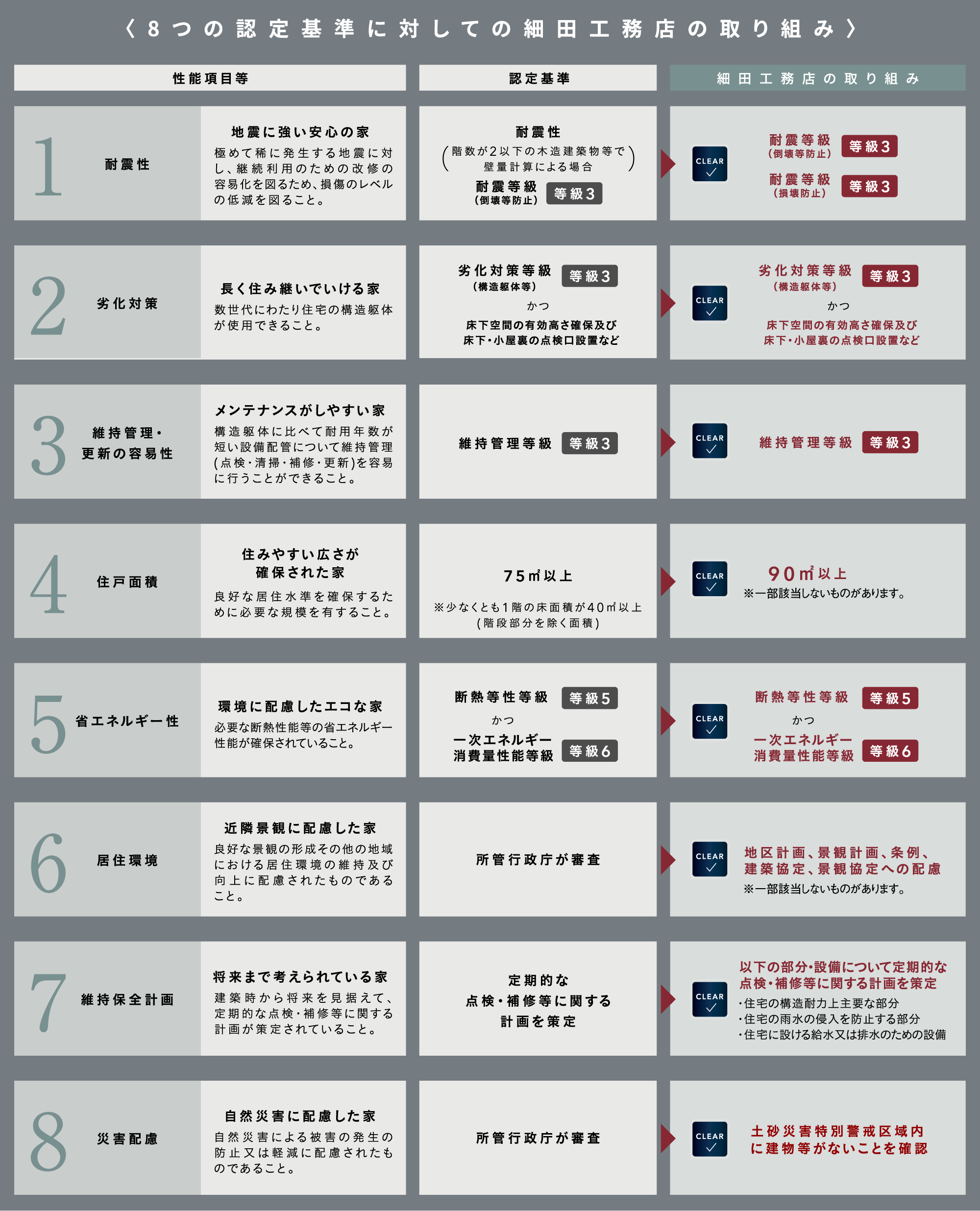 「細田工務店のグローイングシリーズ」は、長期優良住宅として認定を受けるために、