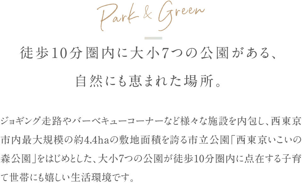 公園や自然も身近な、子育てにも嬉しい住環境が広がっています。