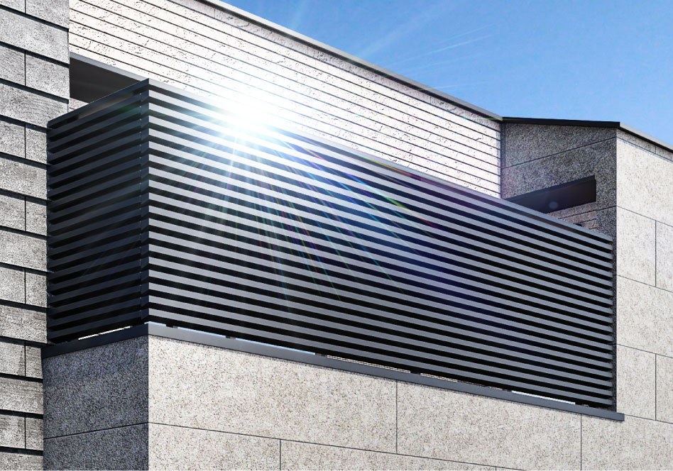 バルコニーには、住まいに格調高いアクセントを与える、スタイリッシュなスリムフレームの手摺を採用しています。