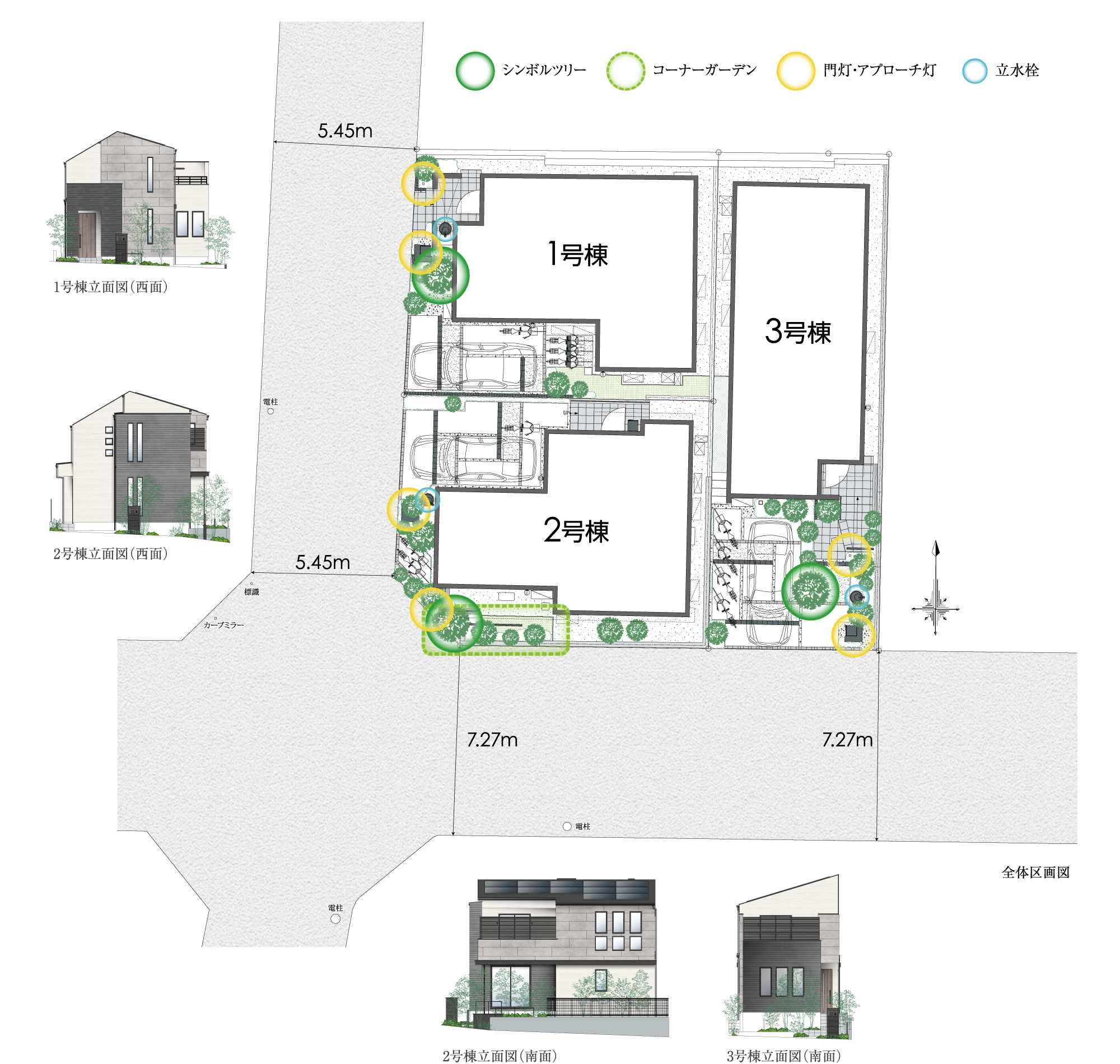 各邸にシンボルツリーなど豊富な植栽計画。