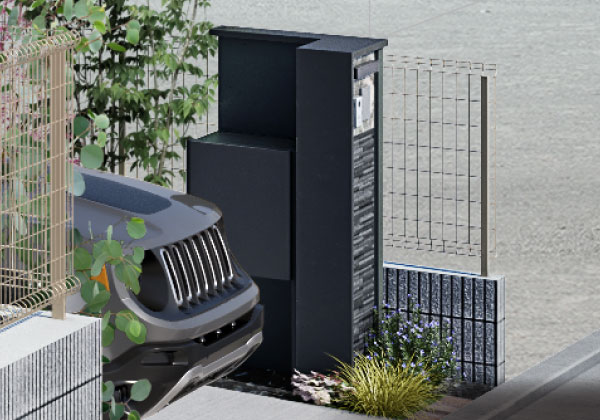 スッキリした見た目ながら、不在時に最大20kgの荷物を受け取れる宅配ボックスと郵便ポストを備えた機能的門柱です。