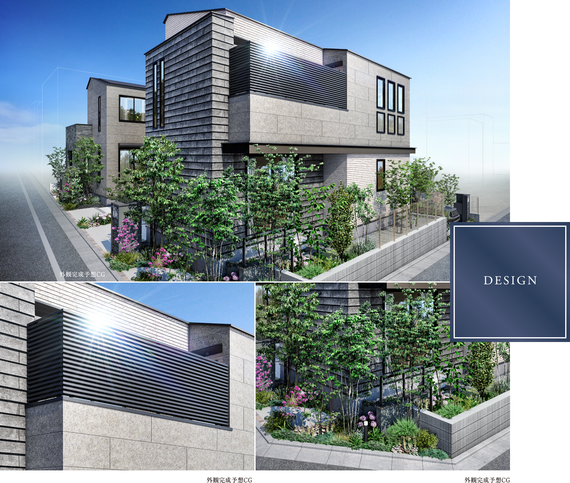 植栽をたっぷりと配したセミクローズ外構は、
