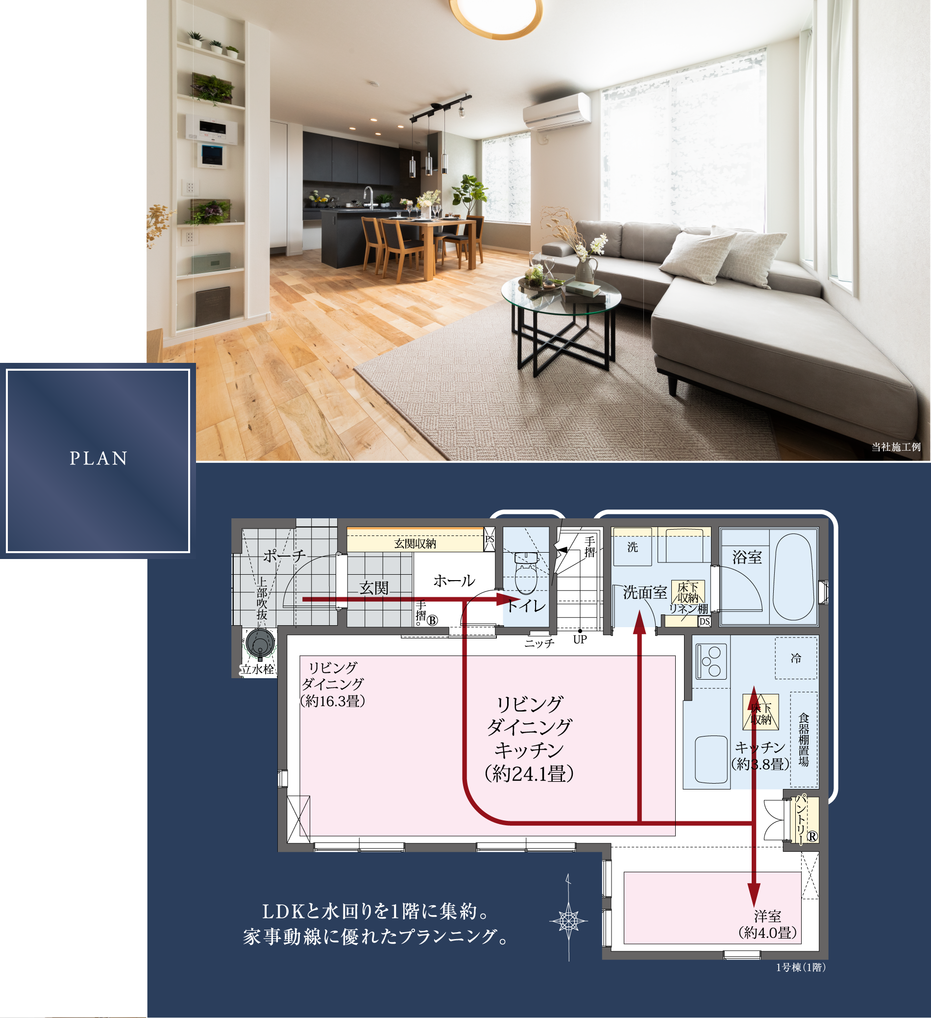 1階に20畳超のリビング・ダイニング・キッチンと