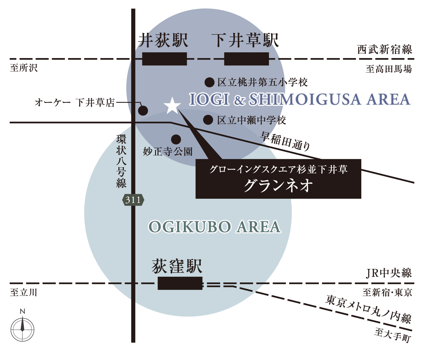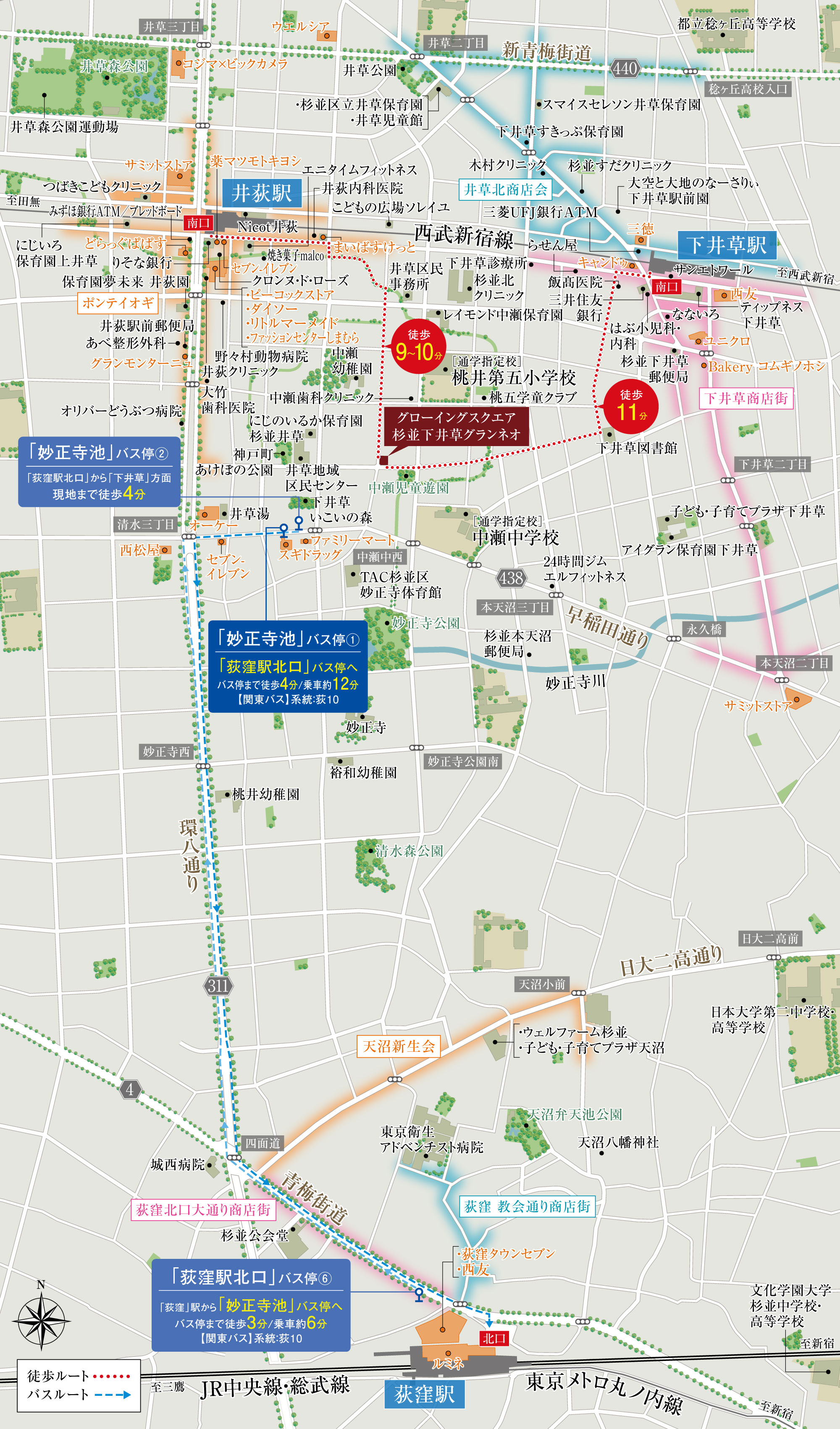 (徒歩25分・約1,980m~約1,993m)「荻窪」駅北口からすぐにあるショッピング施設。ファッションや雑貨、コスメなど、さまざまなショップが揃っています。また、「西友 荻窪店」も入居しており、日常のお買い物にも便利です。
