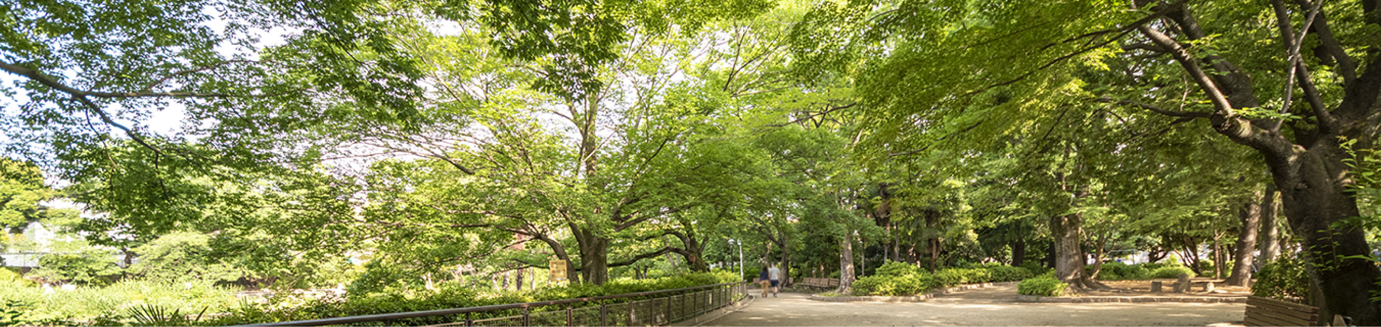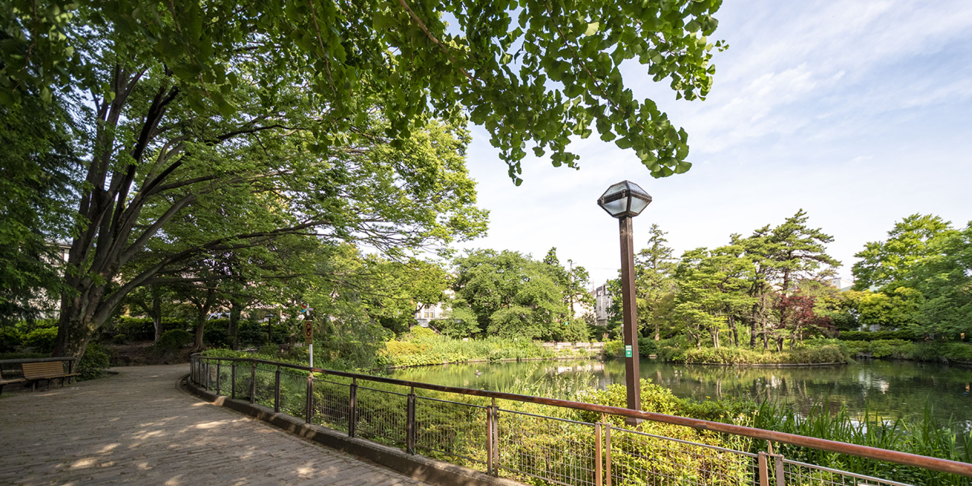 公園の中心にある妙正寺池は、古くから武蔵野台地の湧水池の一つとして知られてきた自然湧水の池。園内には、遊具広場や多目的広場が設けられ、園路の外側に立ち並ぶアケボノスギ、サクラ、ケヤキなどが四季折々の風情を醸し出しています。また、野鳥も多く飛来し、バードウォッチング等も愉しめます。
