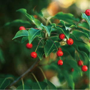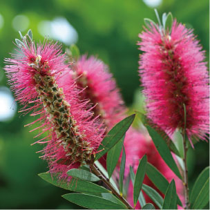 初夏にかけて白い花を咲かせる常緑樹のソヨゴや一年を通して美しさを保つ常緑ヤマボウシ、濃いピンク色の花が華やかさを演出するロドレイヤ、個性的なブラシ状の花を咲かせるカリステモンなどを植樹。四季折々の多彩な植栽が愉しめます。