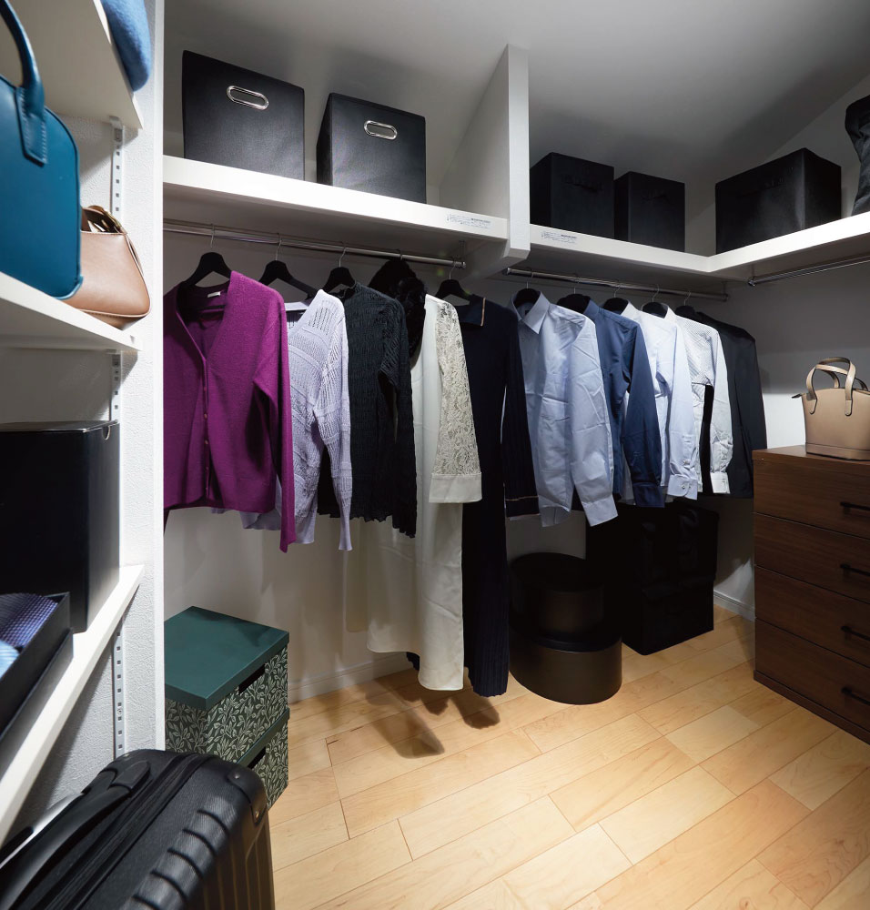 主寝室には大型のウォークインクロゼットを確保。中に入ってお洋服のコーディネートができ、大容量の収納力も大きな魅力です。